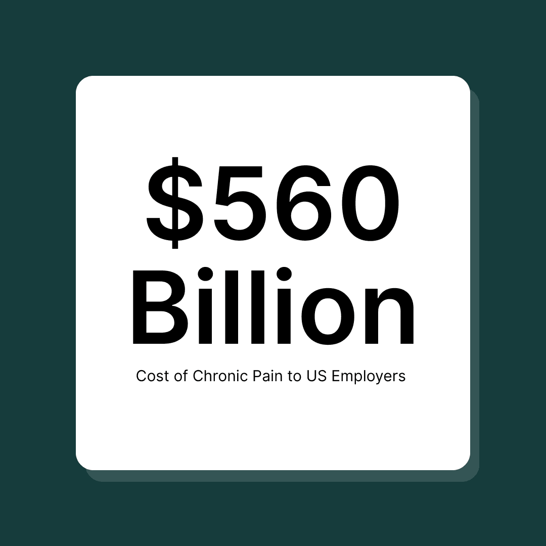 Studies estimate chronic pain costs U.S. employers $560-$635 billion annually due to lost work days and losses in productivity.